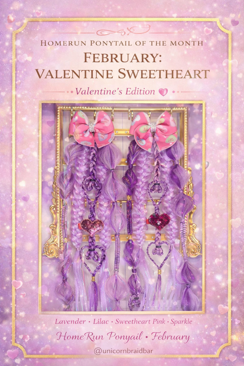 Each design is built around a theme, season, or holiday and crafted from Gabby’s imagination: bold color blends, dimensional braids, creative wraps, glitter moments, charms, textures, and signature Unicorn Braid Bar energy.